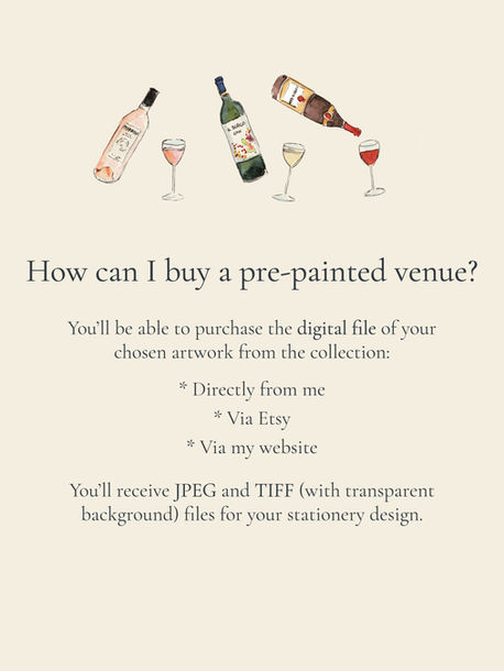 Unlike my bespoke service, these artworks are painted in advance and sold “as is” (with no personalisation). This makes them a quicker and more affordable option, while still giving you the elegance of custom artwork. You are welcome to design the stationery yourself, or email me if you'd like a hand!